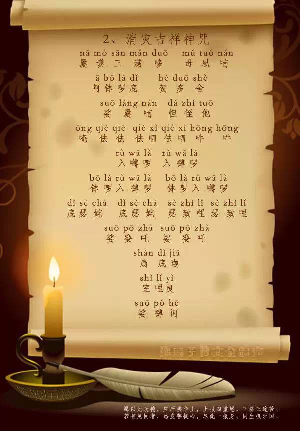 以上是关于教大家学念咒:多个咒语汉字拼音对照的介绍,希望对想了解佛学知识的朋友们有所帮助。